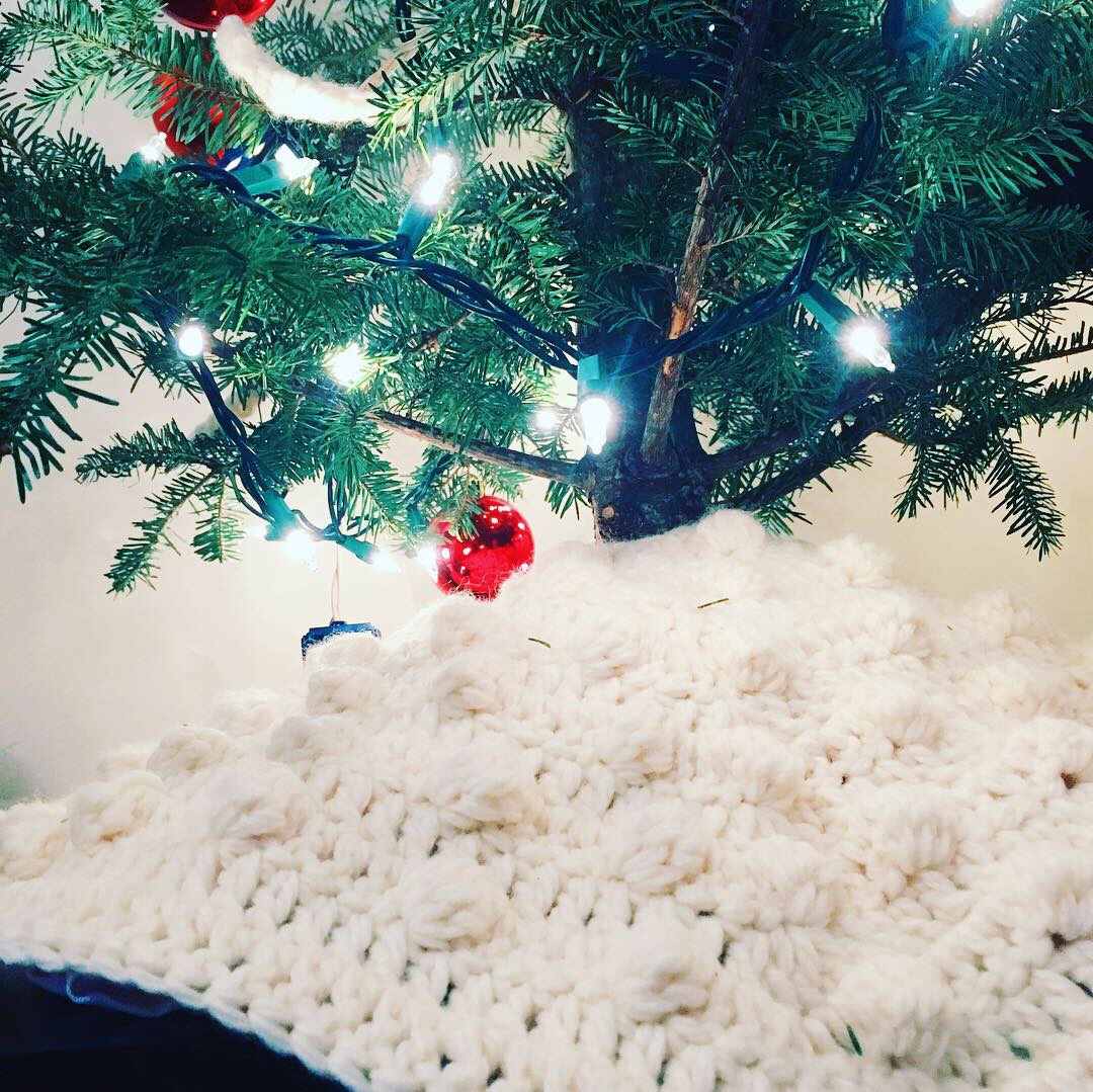 Find the link to the Mini Christmas Tree Skirt Pattern with bobbles here