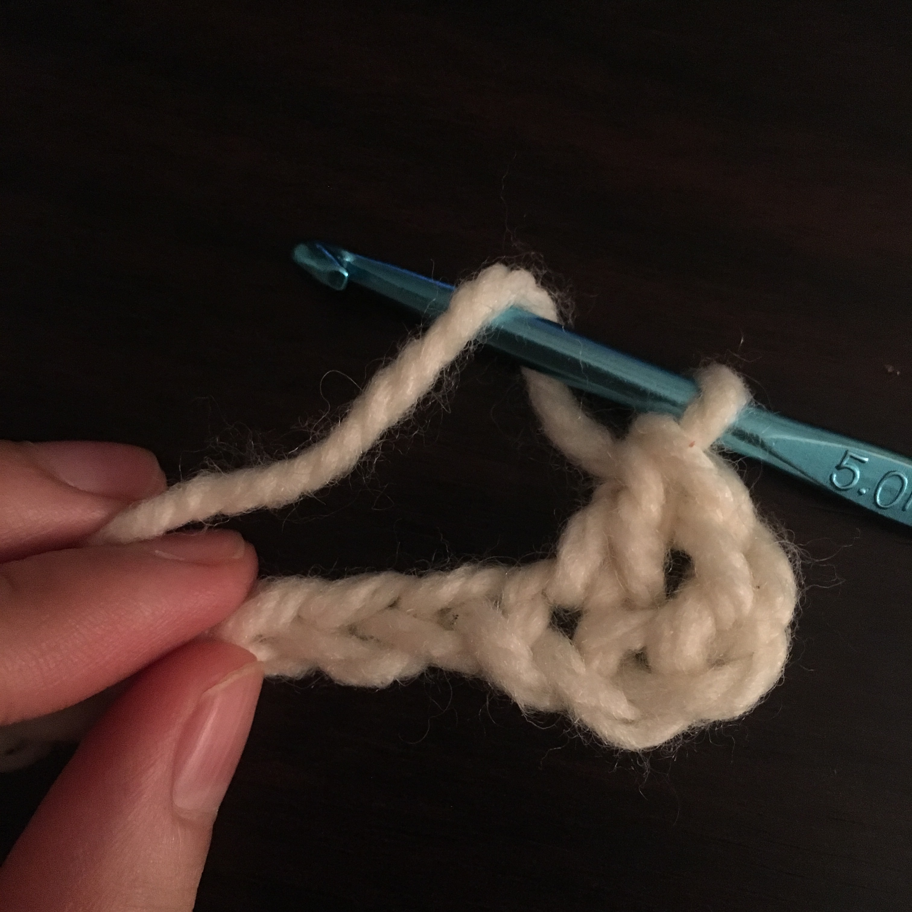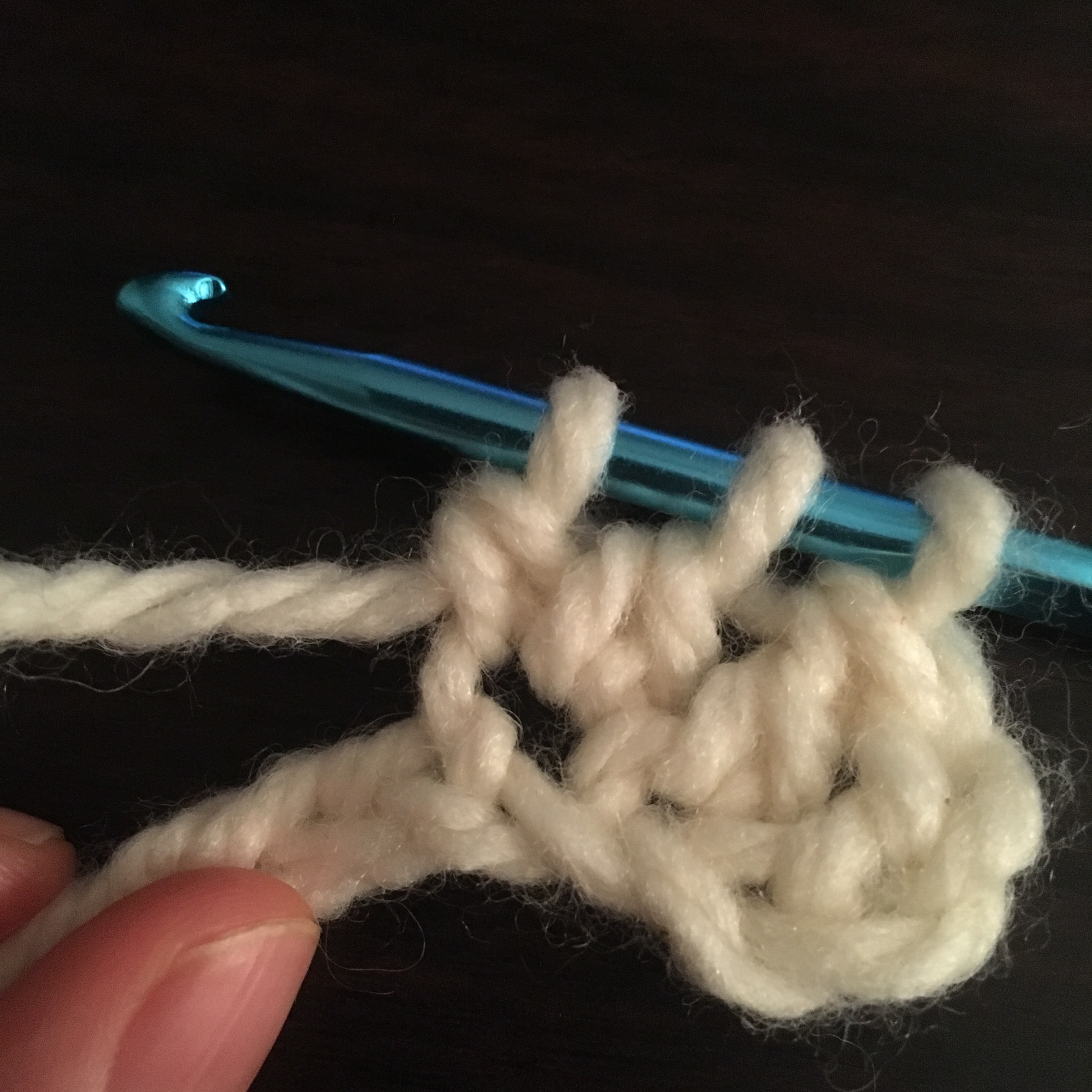 7. Yarn over and pull through two loops. You should have 3 loops on your hook.